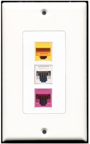 RiteAV - 1 Port Cat5e Ethernet White and 1 Port Cat5e Ethernet Pink and 1 Port Cat5e Ethernet Yellow Wall Plate Decora