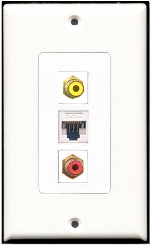 RiteAV - 1 Port RCA Red and 1 Port RCA Yellow and 1 Port Cat5e Ethernet White Wall Plate Decora